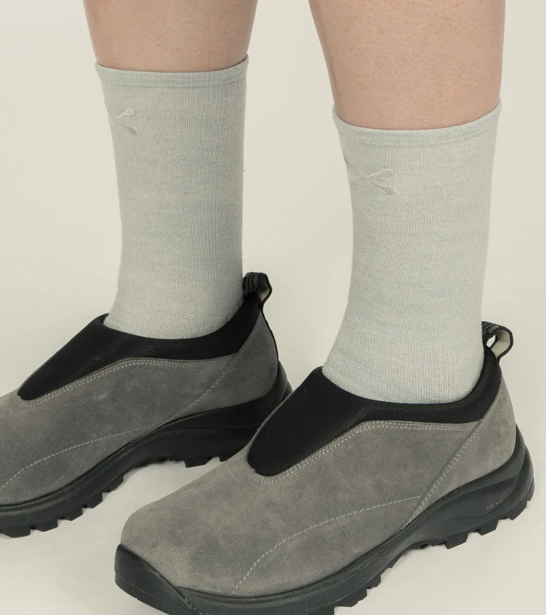 20 公分襪高適合各種腿型,前中低調 LOGO 電繡與後中直條 LOGO 紋理,將品牌探索精神藏於細節中,低調卻清晰可見。