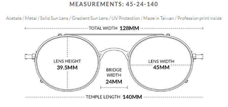 Acetate / Metal / Solid Sun Lens / Gradient Sun Lens / UV Protection / Made in Taiwan / Profession print inside