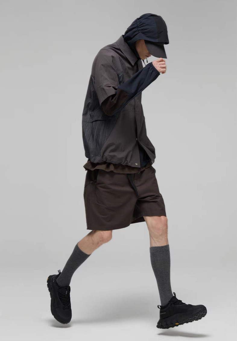 DECESOLO 多色拼接尼龍polo短袖襯衫-黑/咖/灰