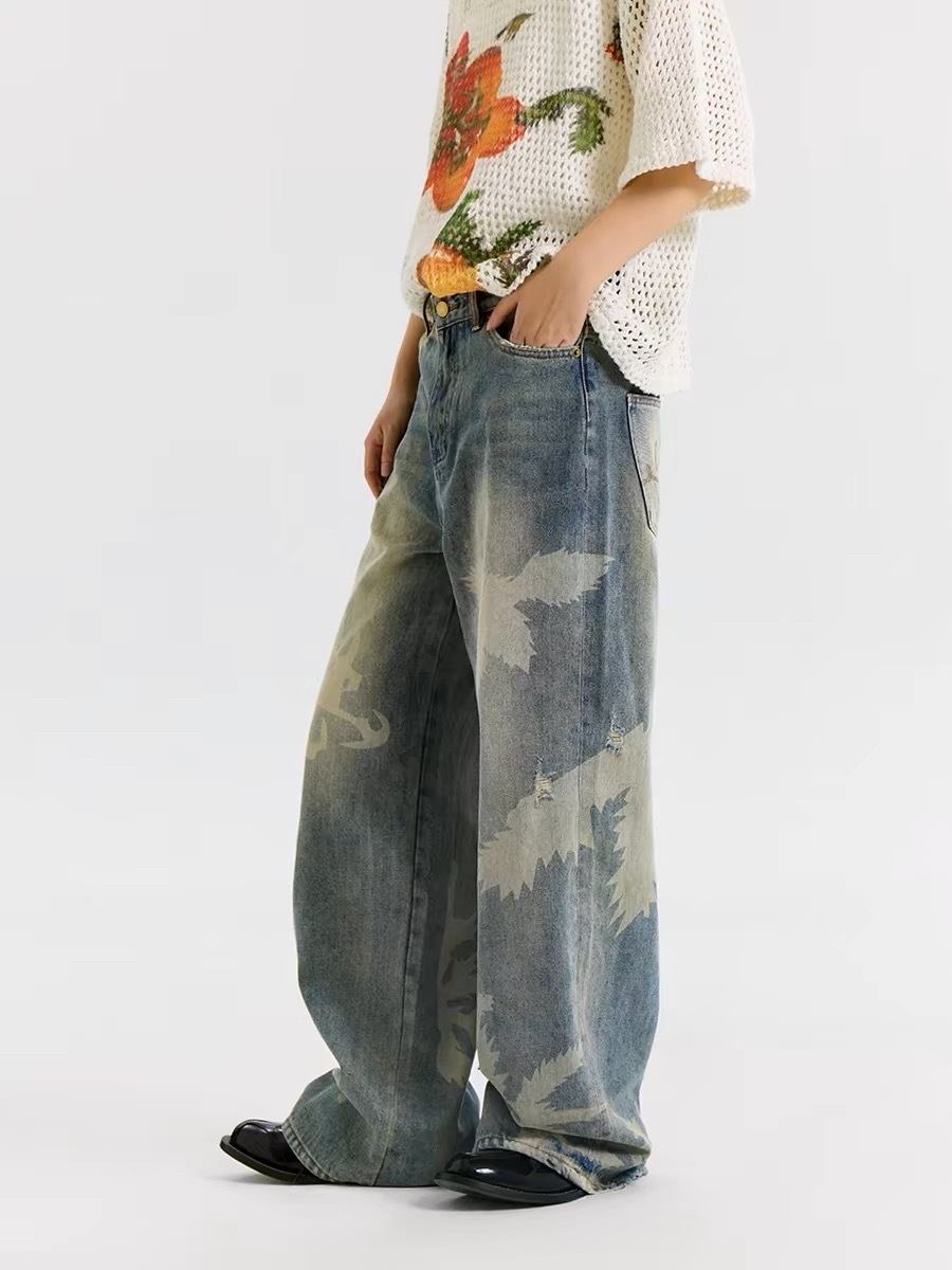 CONP 果蔬葉工藝牛仔褲