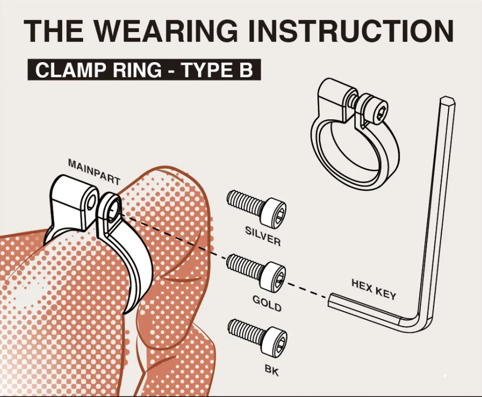 貫徹純機能的思維模式,以直覺的邏輯應用將配件與身體結合,提取 C 型夾、柱型夾等各式工業夾具的概念,在腕、耳骨、指節等部位合理的找到各自的角色,透過設計轉化,精準定位。