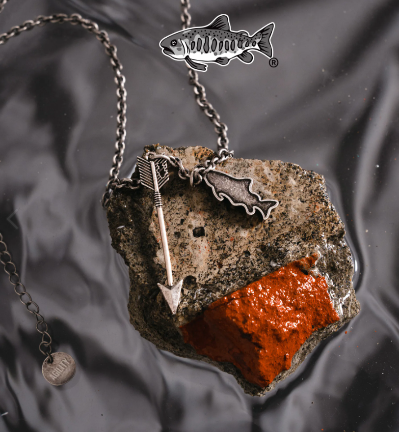 - 鮭魚輪廓的魚影樣式墜飾,尾端Logo吊牌