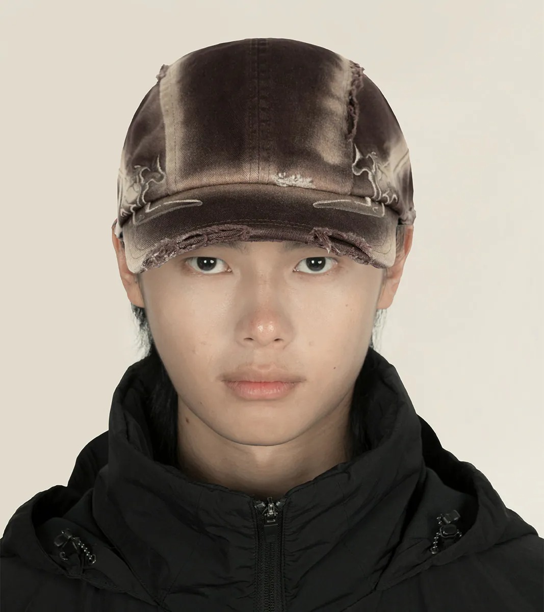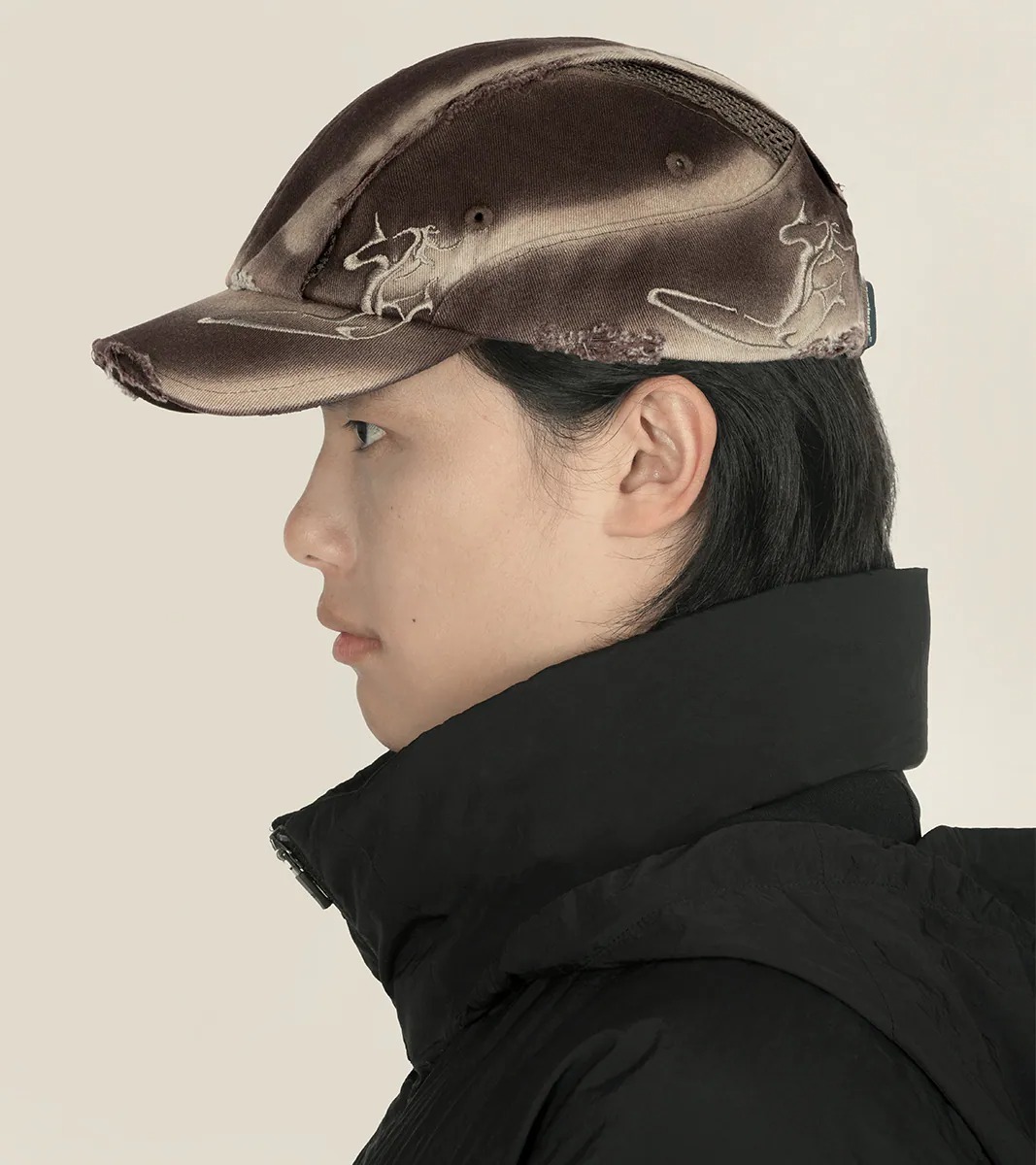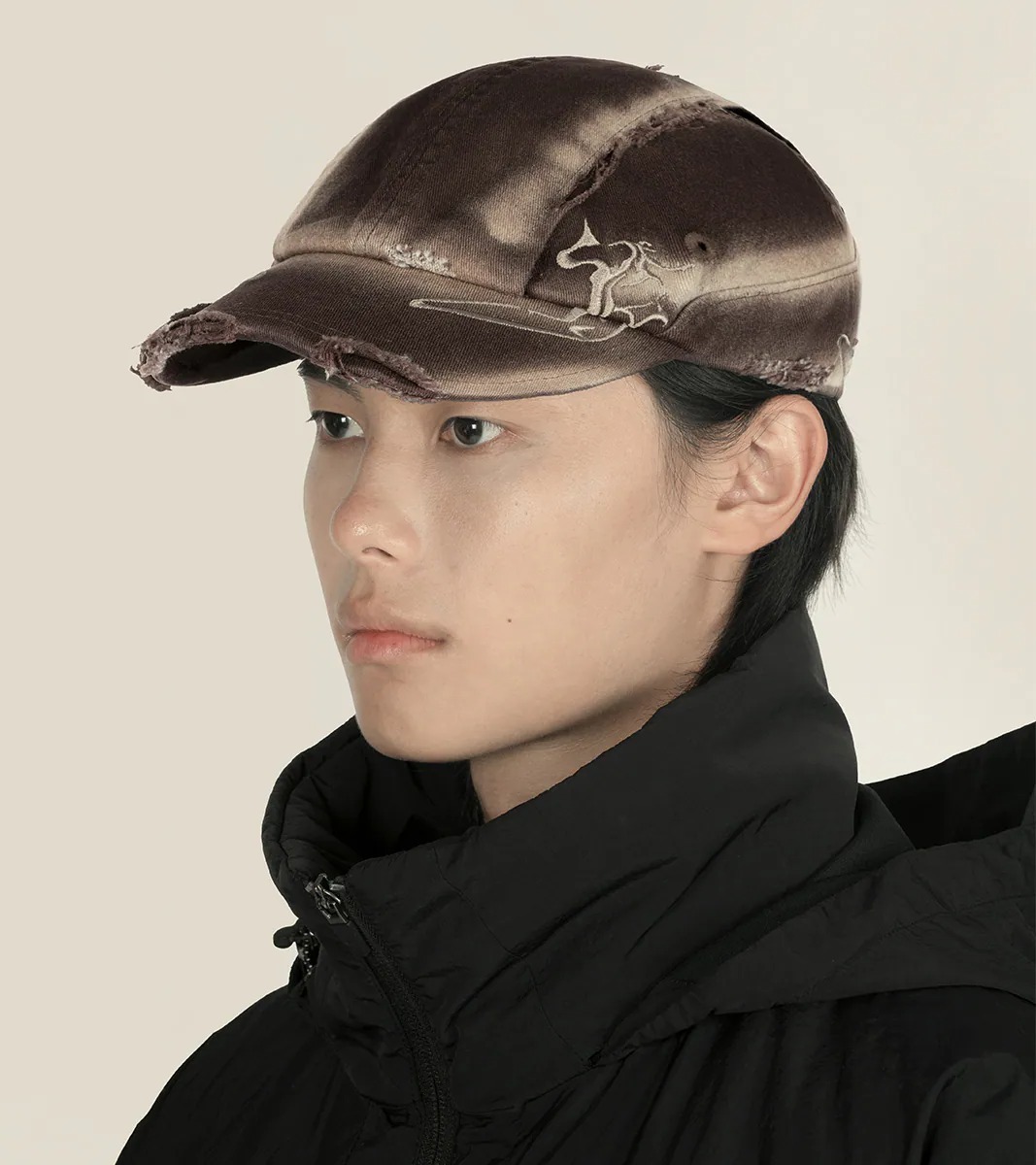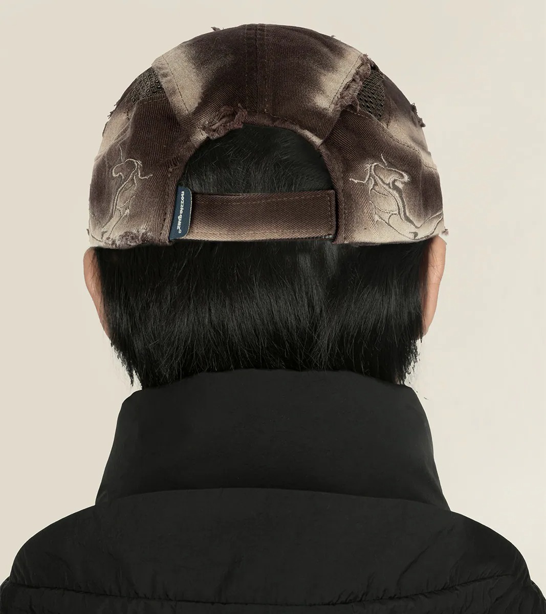 - 帽體與帽簷上的流線型作舊與破壞設計