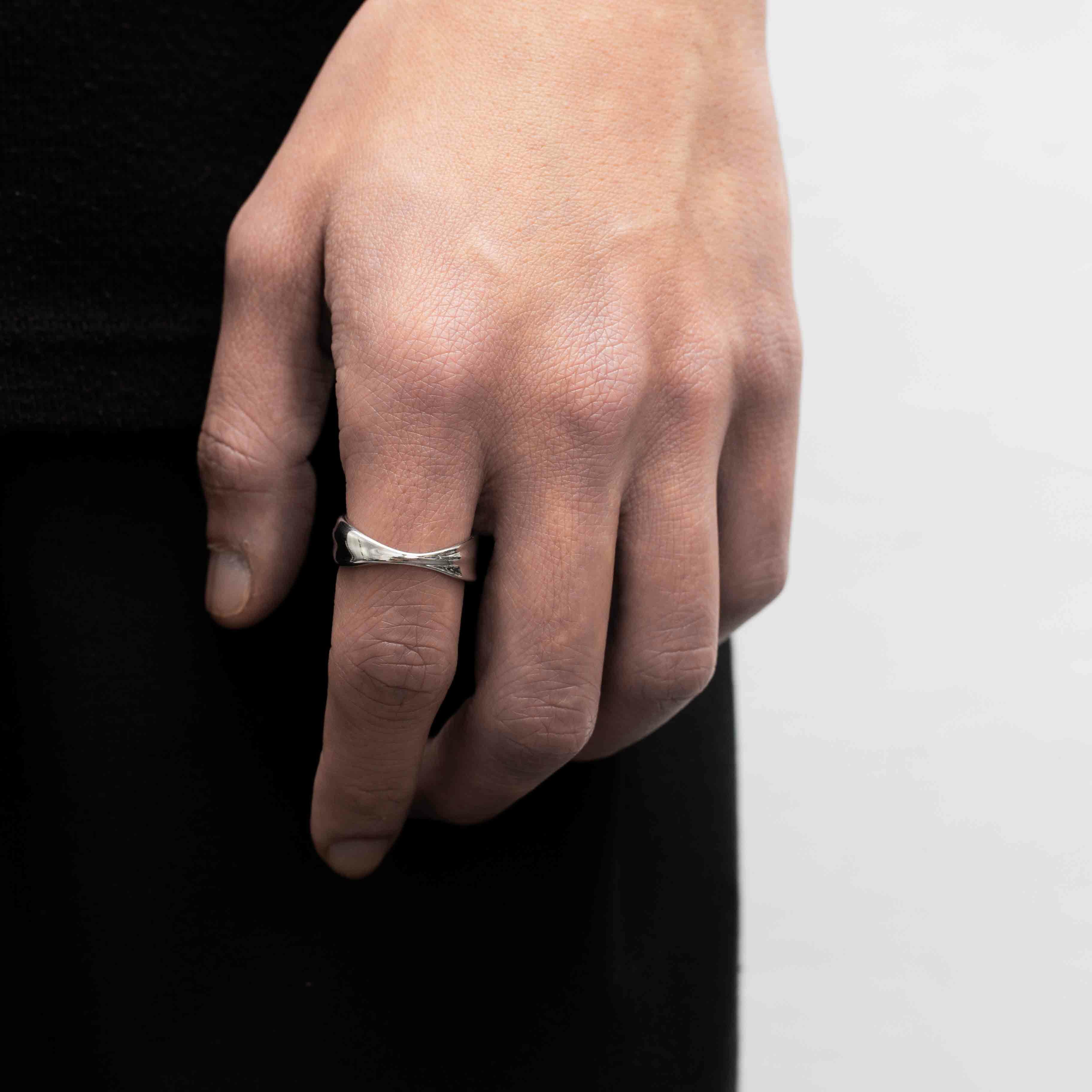 RECOVERY 波紋緞帶戒指 (亮銀色)