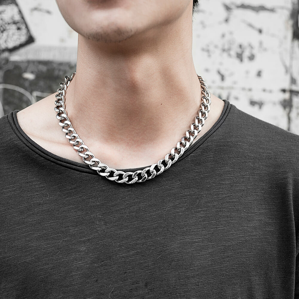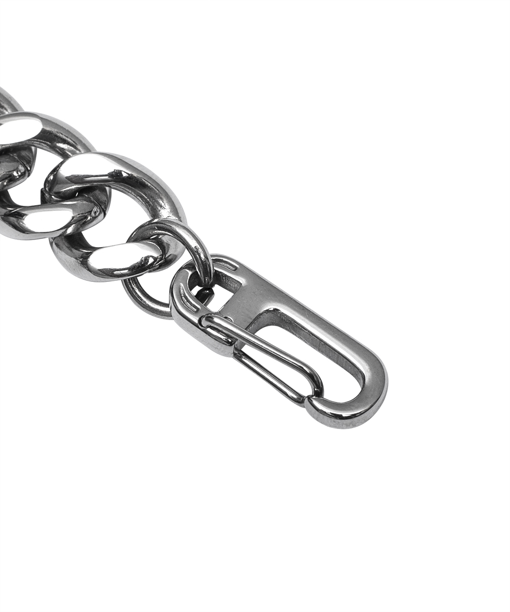 • 鋼製12MM的粗短項鍊-頸鍊,細扣頭可以自行扣上不同鍊條環節調整想要的長度,搭配性極高的一款單品
