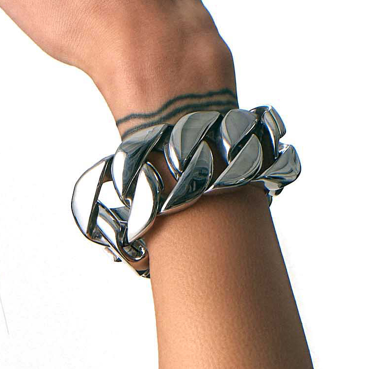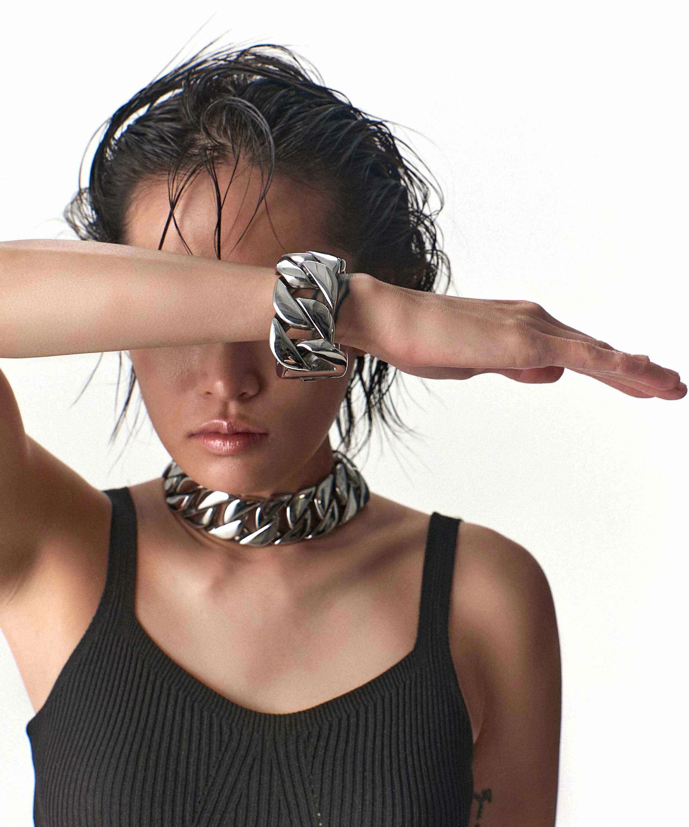 • 扣具使用鍛造工序製成,鍊條交疊延伸,賦予視覺不同特性
