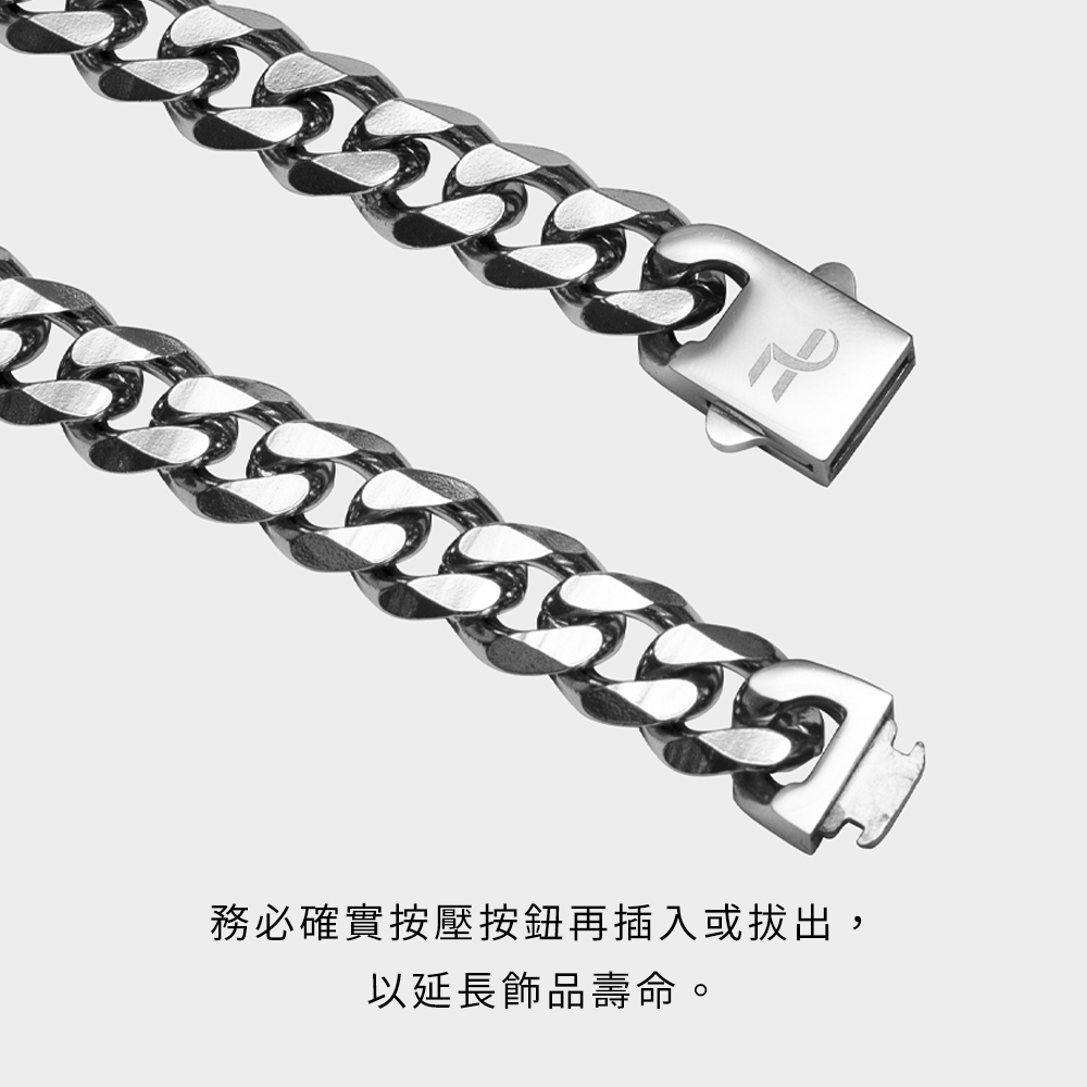 注意事項 此扣頭使用時務必同時按壓卡榫,不可硬拉,以免影響飾品壽命。