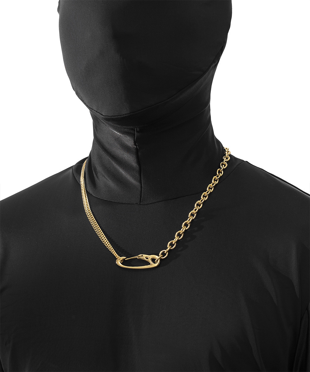 RECOVERY 烏鴉頭骨扣頭多層次項鍊 (亮金色)