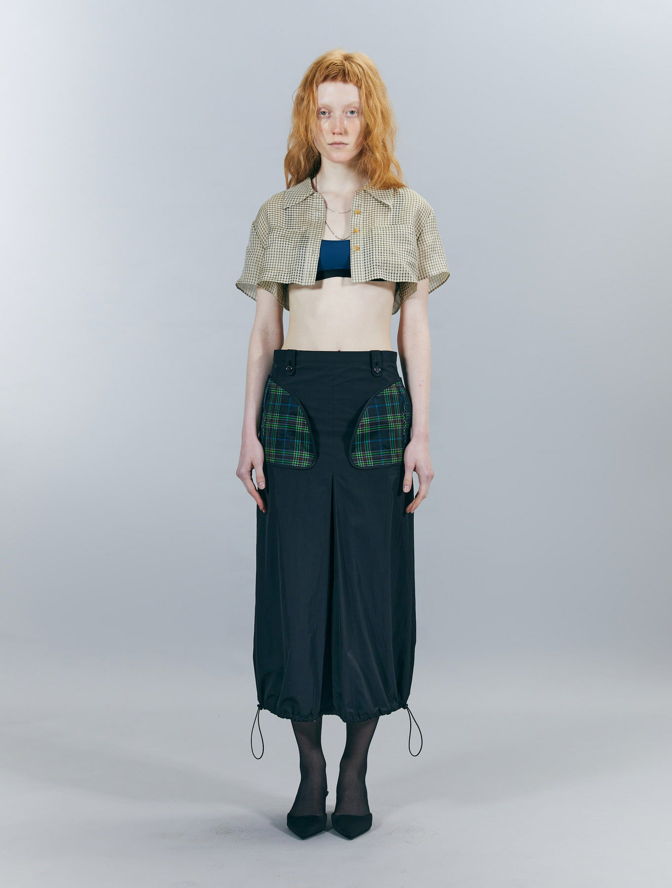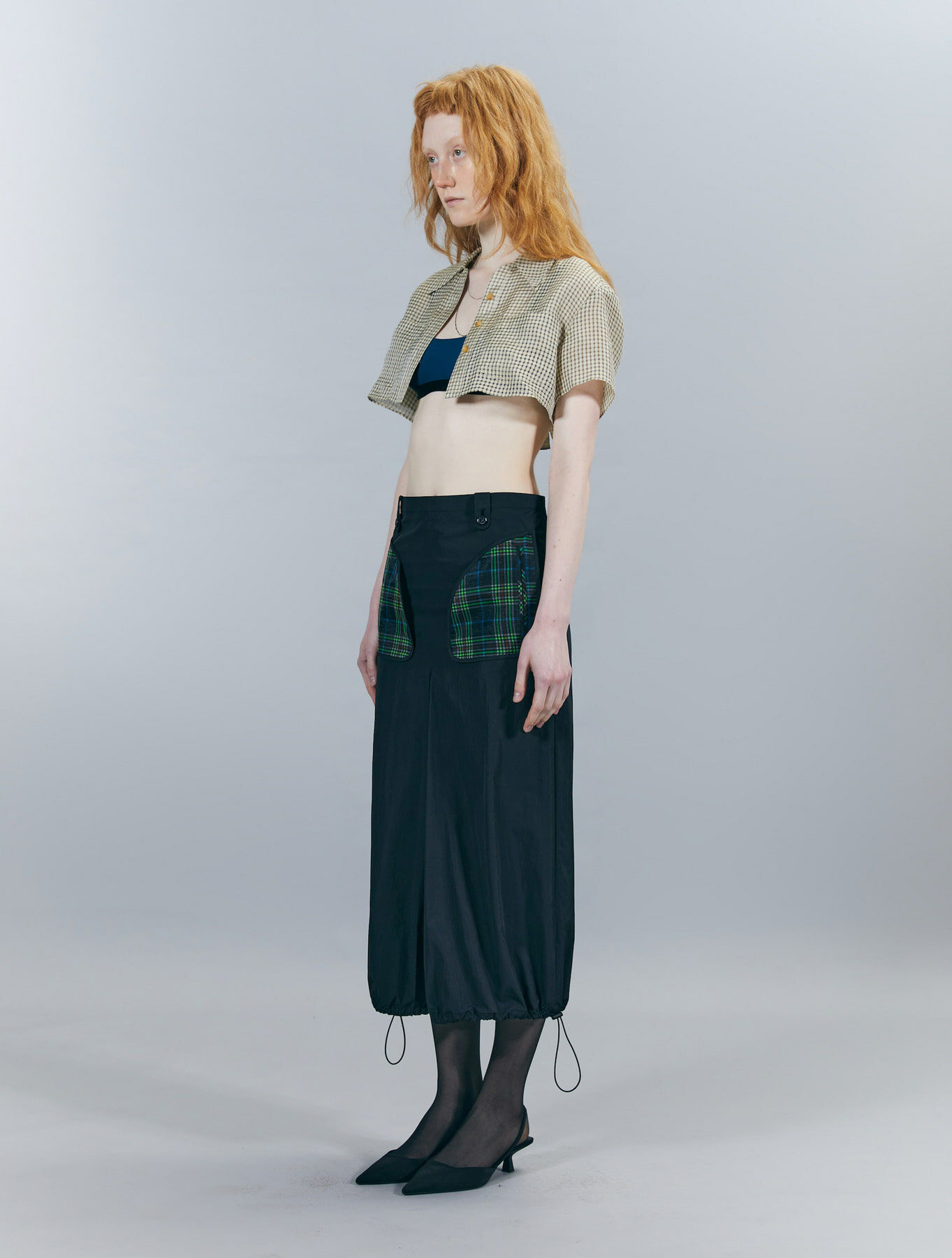 ODLY WORKSHOP Tartan Big Pocket Midi Skirt